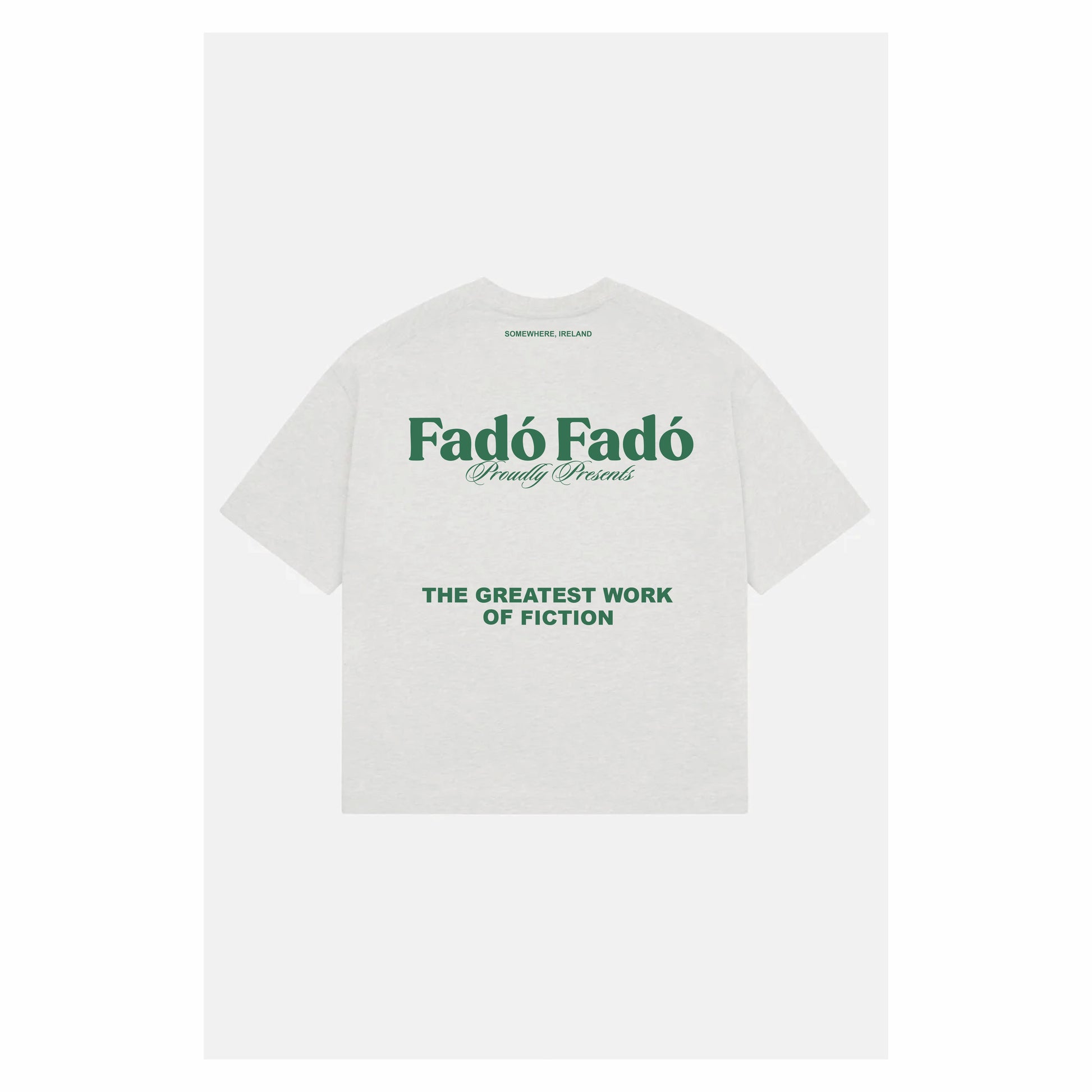 Our best selling work of fiction t-shirt is crafted from a 305GSM heavyweight Jersey. 100% Cotton, this T-shirt has been designed to last and to become better over time. It comes in a grey marl colorway with emerald green branding.